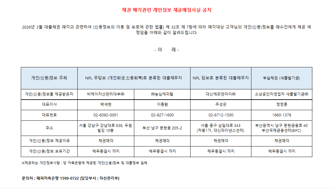 페퍼저축은행의 주요 사항을 안내해드립니다.